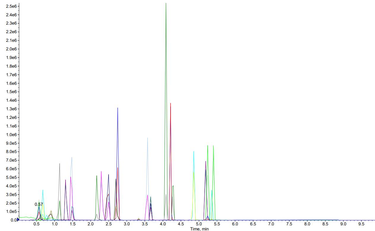 Şekil 4 LC-MS toplam akış kromatogramı matris spikeli çözelti