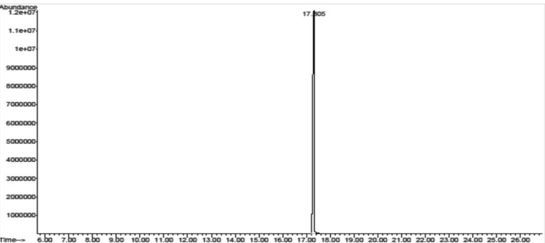 Xelsius Sistemi kullanılarak yapılan sentez ürünü, kütle spektrometresine bağlı Gaz Kromatografi sistemi ile analiz edilmiştir (GCMS analizleri, Agilent Network 5973 kütle dedektörü ile donatılmış bir GC Agilent 6890’da (Agilent Technologies, Santa Clara, CA, ABD) 30 m kapiler kolon, i d 0 25 mm ve film kalınlığı 0 25μ m kullanılarak gerçekleştirilmiştir GC koşulları enjeksiyon bölünmesi 1 10 enjektör sıcaklığı 250 C idi, dedektör sıcaklığı 280 C Gaz taşıyıcıhelyum 1 2 mL/dak), sıcaklık programı 50 C’den 5 dak) 100 C’ye 1 dak) 10 C/dak, 230 C’ye 1 dak) 20 C/dak, 300 C’ye 5 dak) 20 C/dak