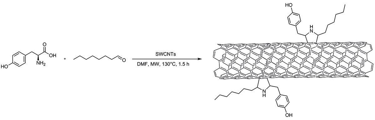 DOTA ve β-siklodekstrin birimleri taşıyan yeni bir SWCNT platformu. Mikrodalga ışıması altında “tek atış” çoklu dekorasyon.